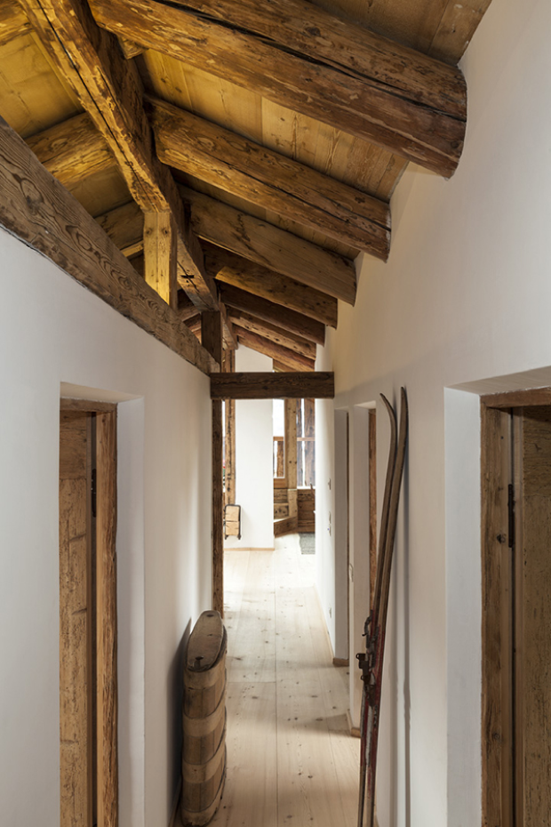 In montagna i colori naturali si integrano con la natura circostante. Il legno è uno dei materiali più idonei consigliati per mantenere una temperatura adeguata negli spazi interni. E’ un materiale senza tempo che “invecchiando” pervade ogni singolo spazio della casa con semplicità ed eleganza.