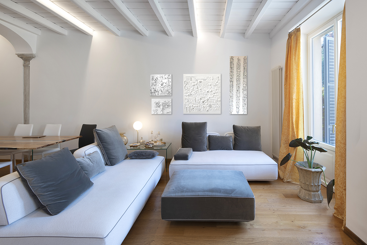 Uno spazio importante in una villa storica che si sviluppa su tre livelli con la giusta alchimia tra stile moderno e classico.