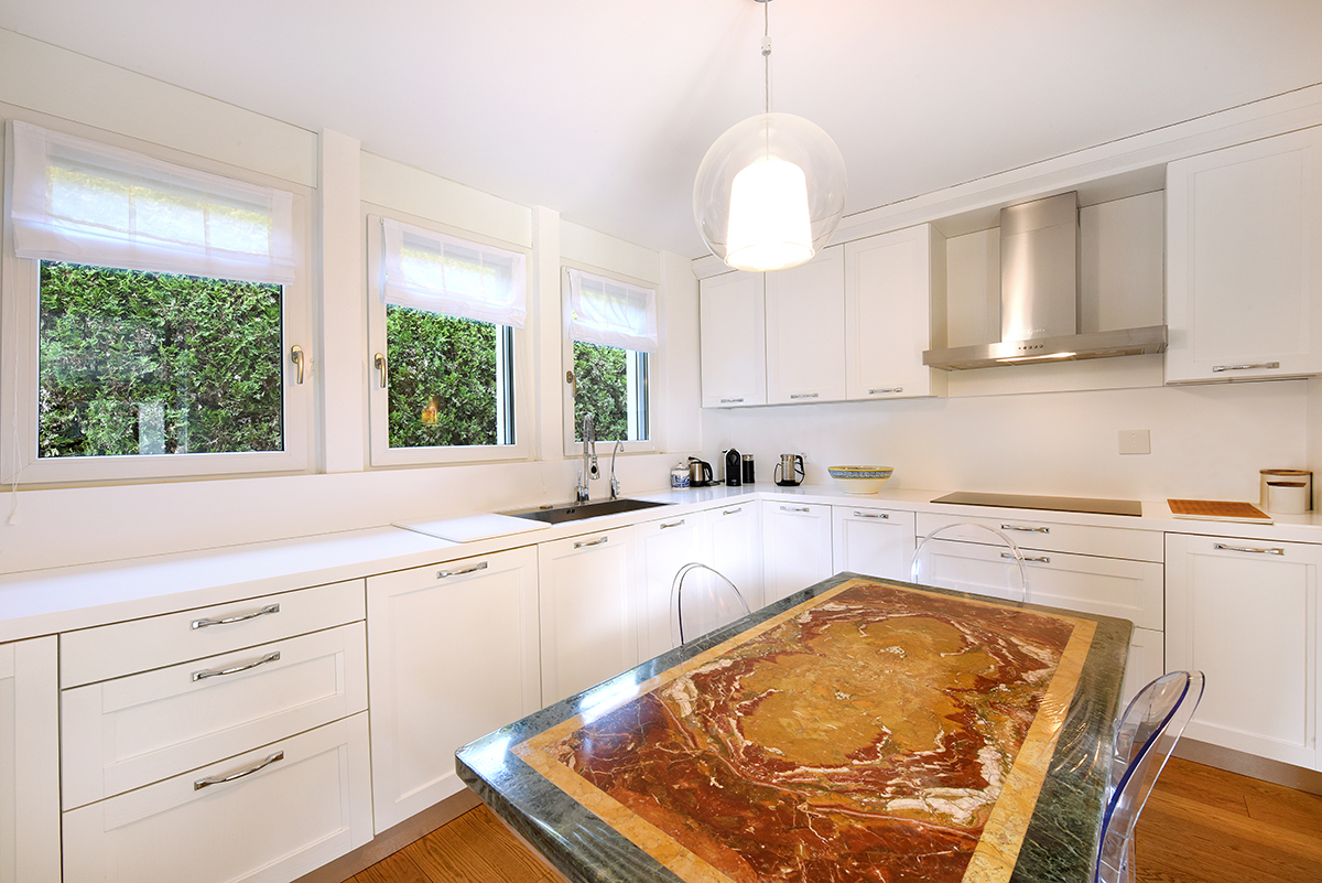 Villa dalle linee pulite ed essenziali che trova al suo interno continuità e coerenza cromatica con l’utilizzo del colore e dell’elemento classico unificante.
